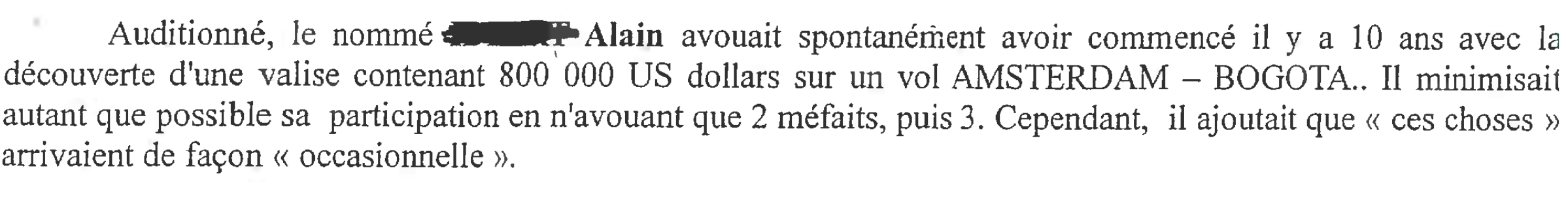 Suis-je ainsi en train de vous dépeindre l’Amérique latine au beau temps des cartels colombiens ou mexicains ? Pas du tout. L’Europe et la France, aujourd’hui. La police française a découvert le pot aux roses par hasard en 2012 et sept douaniers en poste à Roissy à la Brigade surveillance extérieure (BSE) ont été arrêtés.