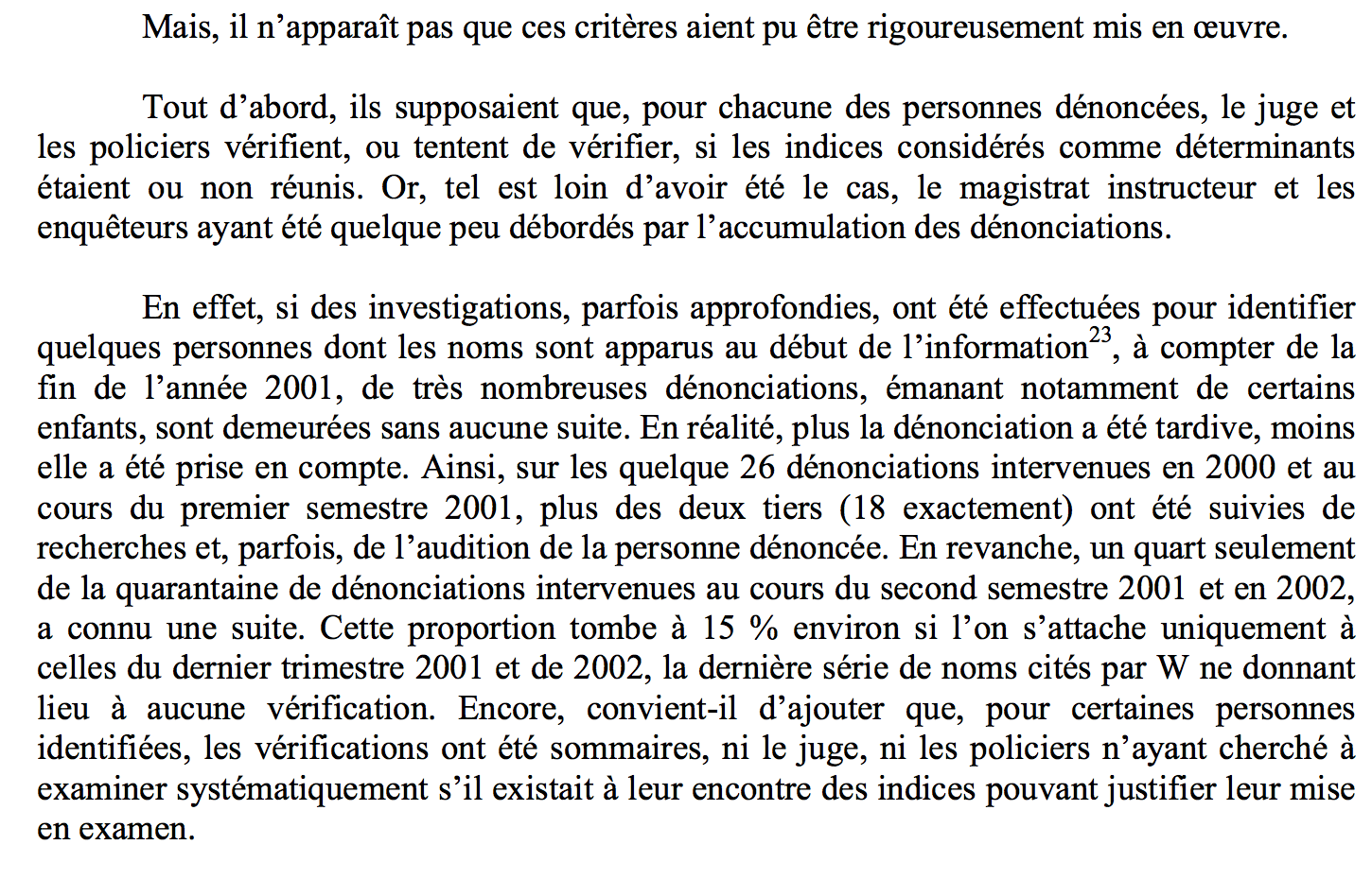Non seulement le juge Burgaud n’avait pas de méthode claire, mais il a donc tout simplement « oublié » de vérifier beaucoup des multiples mises en cause. Surtout, il a « omis » de se demander si à ce niveau statistique de dénonciations, on pouvait continuer à se fier aux enfants et à Badaoui. C’est fâcheux, d’autant qu’aucun autre acteur, du parquet à la cour d’appel, n’a songé bizarrement à lui suggérer.