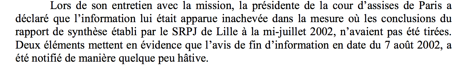 Cet avis de fin d’information est d’ailleurs si précipité que le successeur de Fabrice Burgaud devra le refaire, lit-on encore.