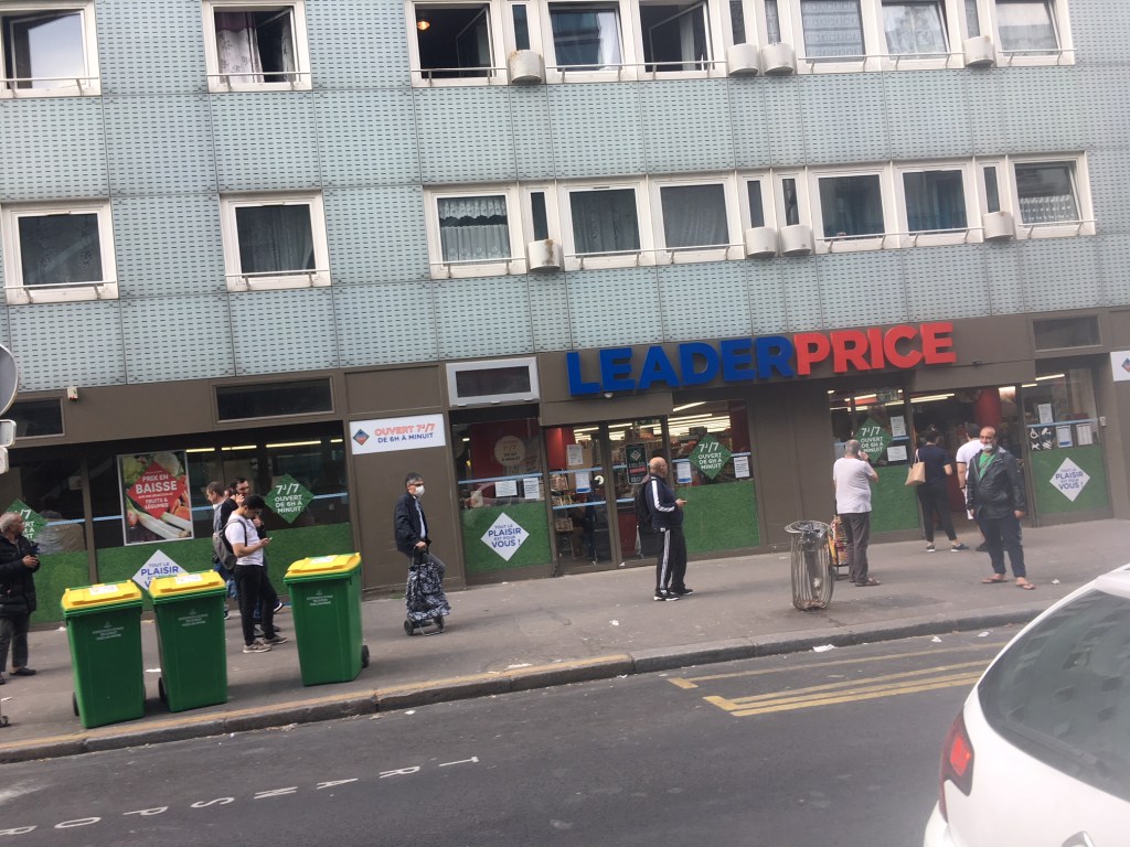 Rue Carrel, je croise exactement 20 passants dont neuf portent des masques, mais pour trois d’entre eux, il est … descendu sur le cou. Devant le Leader Price, il y a une queue d’une vingtaine de personnes dont seulement deux portent des masques. Les personnes peuvent être relativement rapprochées, pour certaines.
