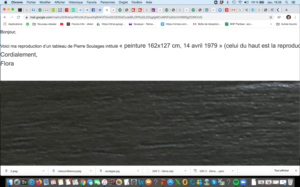Tous les enseignants n’ayant pas encore réalisé que la vieille école de l’avant-numérique était condamnée (c’était l’objet d’un précédent post), ils s’obstinent en effet à procéder de manière traditionnelle. C’est ainsi qu’ils élargissent la « distance de transaction » quelquefois de manière excessivement favorable aux élèves, comme lors de ce cours d’arts plastiques, où il a été demandé à ma fille par mail de « rejouer un des chefs d’oeuvres de l’histoire des arts avec ce que vous avez sous la main ! (objets, personnes, pâte à modeler,… ») et qu’elle a répondu ça :
