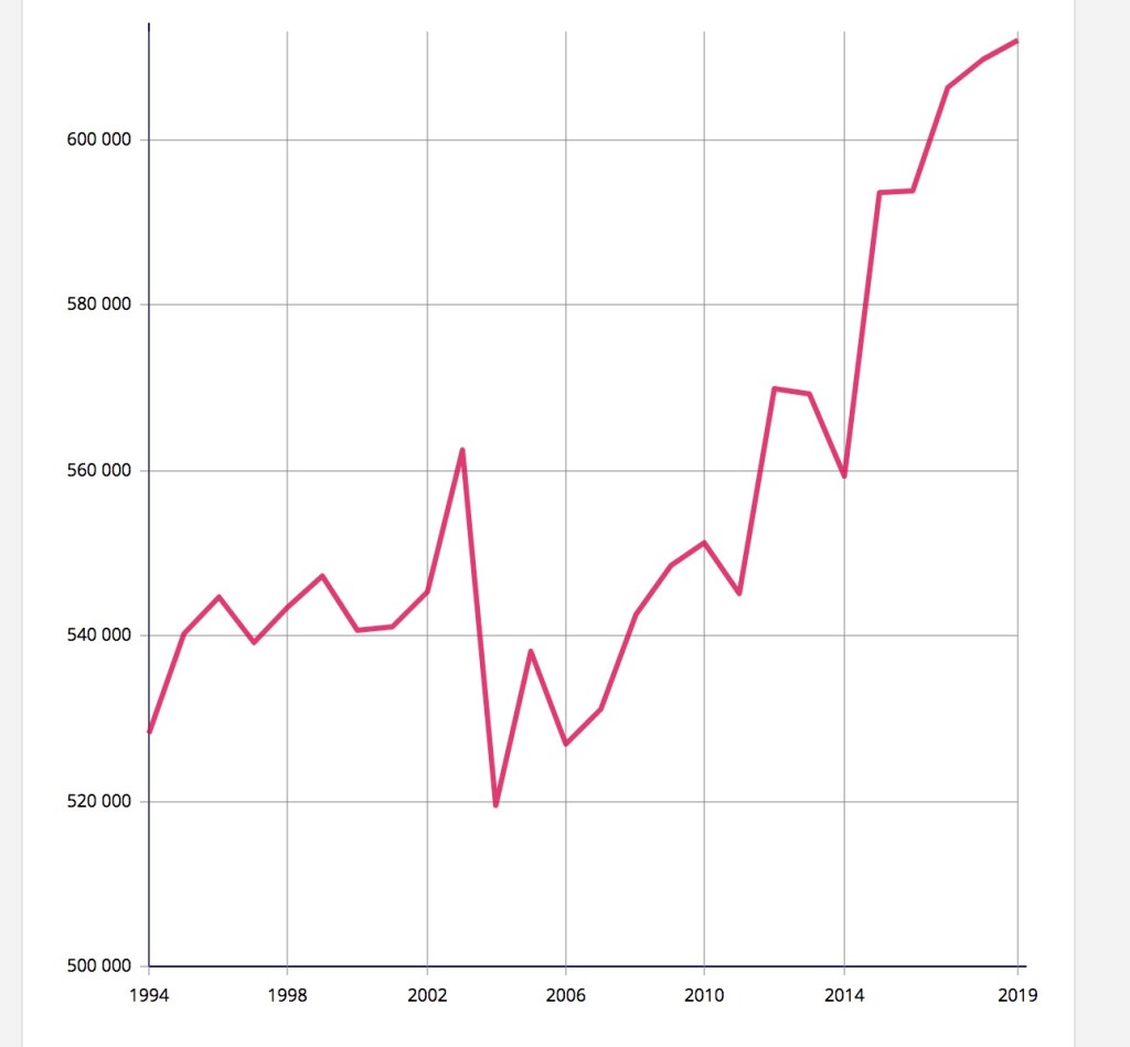 Il est pourtant évident que quel que puisse être le bilan final du Covid, le gouvernement ne pourra pas échapper à sa responsabilité sur le phénomène global de la mort. Il est en effet apparu qu’avant le Covid, 612.000 personnes avaient été frappées en France par la mort en 2019, contre 526.000 par exemple en 2006, dans une indifférence collective et un silence coupable des autorités. Voici la courbe officielle dévoilée par l’Insee, où on voit que ce scandale caché n’est pas maitrisé par l’Etat.